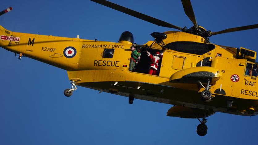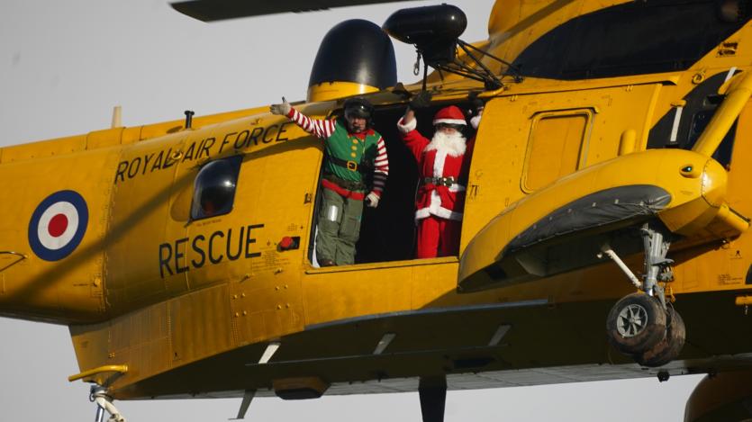Santa soars over North Devon in his Sea King helicopter to spread festive cheer