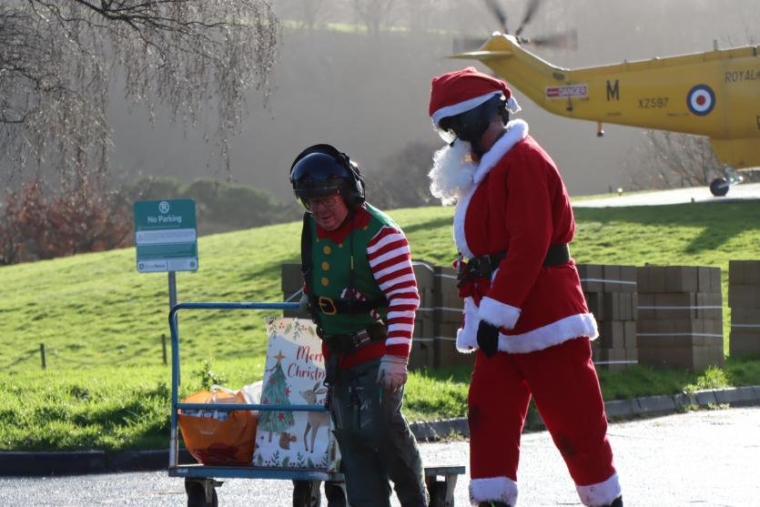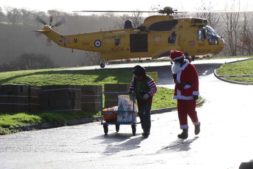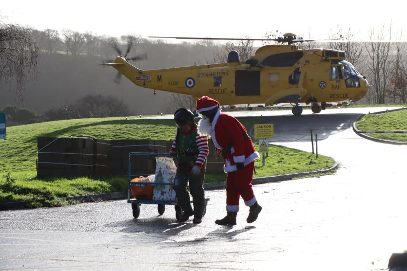 Royal Devon Hospitals Charity marketing and communications officer Andy Keeble said: “Hospital donations come in all shapes and sizes and we gratefully receive them in so many different ways but it’s always very special to see Father Christmas deliver them in a Sea King helicopter!