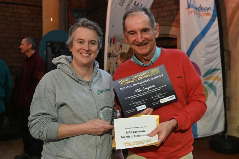Winner: Mike Langman – Friends of Clennon Lakes. Mike leads the Friends of Clennon Lakes, who have been restoring Torbay's most important wetland to its former glory for a decade. Without the work of Mike, Duncan and all the volunteers who routinely meet up as working parties at The Lakes, one of our most beautiful and important wetlands would simply have disappeared.