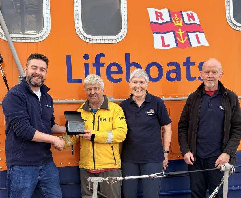 Brett received the memento in recognition of his support from Richard Fowler, Coxswain, along with Debbie and David Phillips, Torbay RNLI’s Torquay Ambassadors who coordinated last year’s event on behalf of Torbay RNLI.