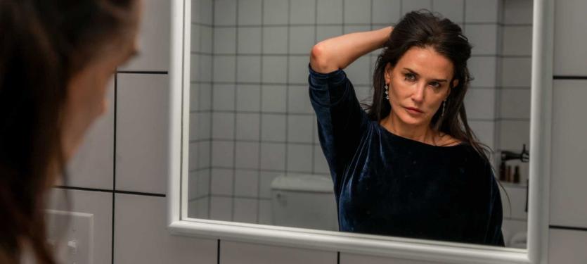 Demi Moore stars in this feminist horror movie as Elisabeth Sparkle, a former A-lister past her prime and suddenly fired from her fitness TV show by repellent studio head Harvey (Dennis Quaid).