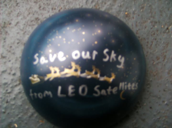 Above: Message from Mortehoe: ‘Join the throng to say NO to Elon Musk's LEO satellites, they are a danger to bird, bee, animal, you and me’.