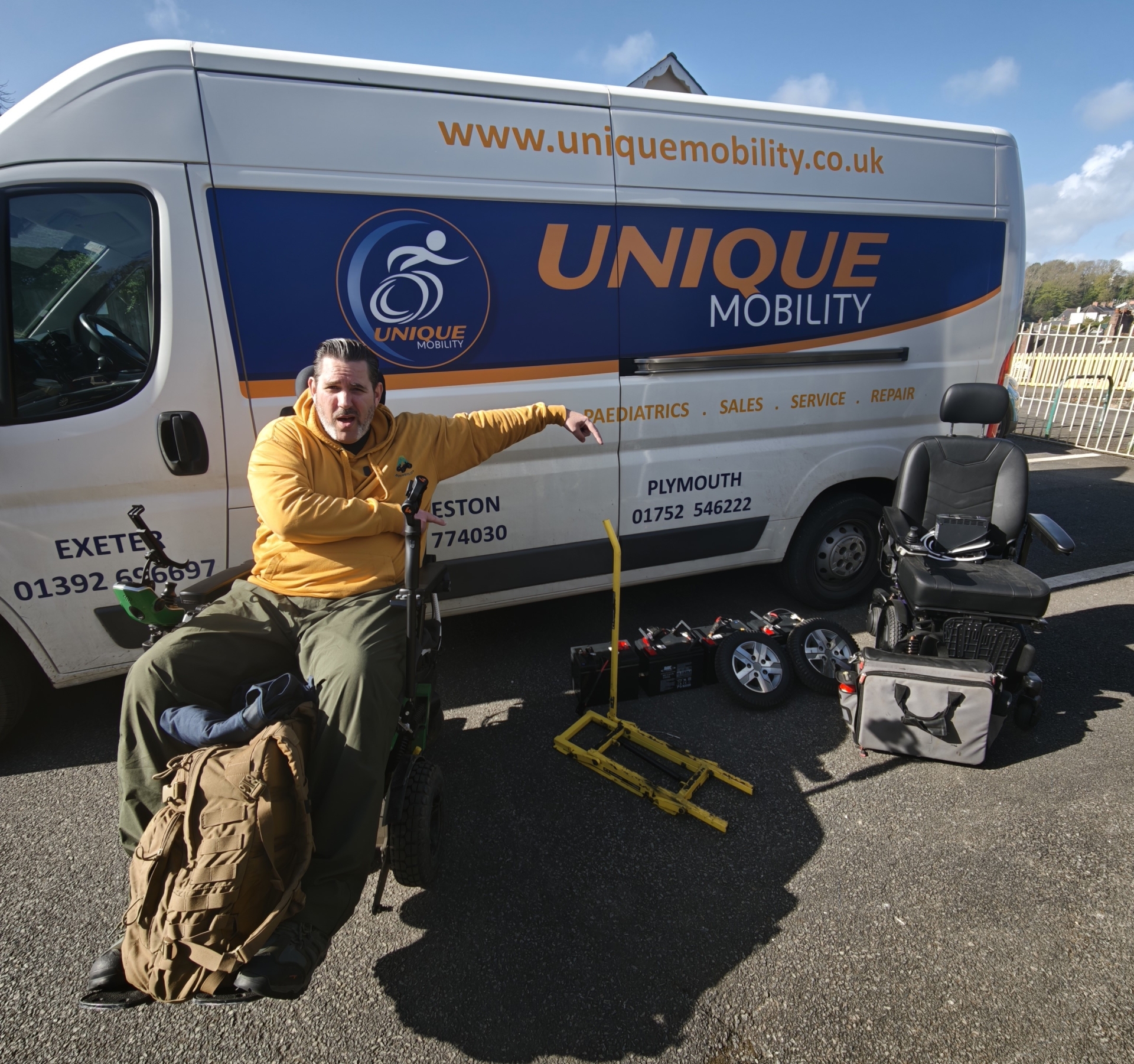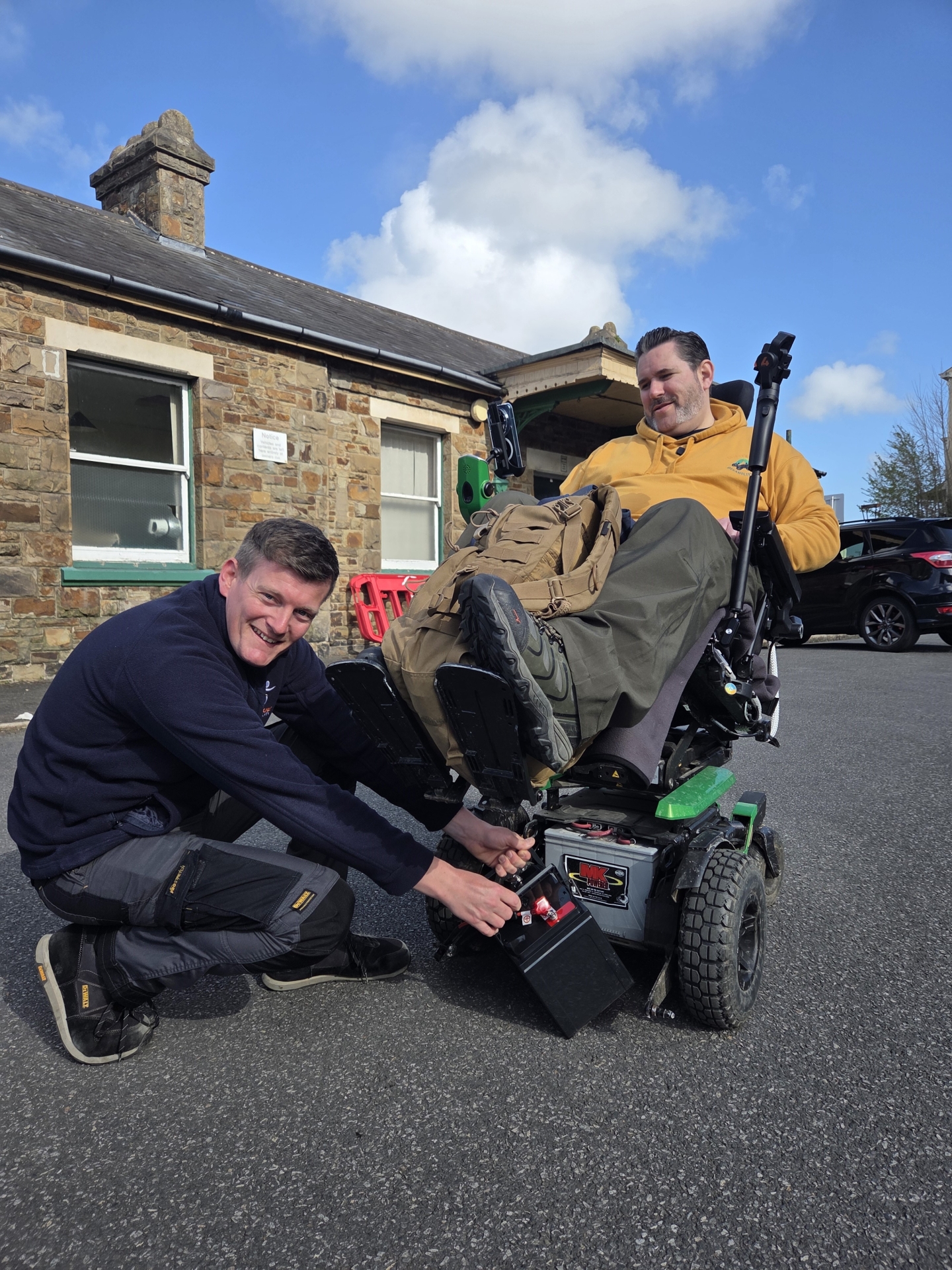 The journey required two battery changes, support from Unique Mobility engineer Lee Johns and Quantum sales manager Kevin Atkins, spare batteries, a support van and a back-up chair, underlining the scale of support currently needed to make 50km possible in his Quantum 4Front 2 powerchair.